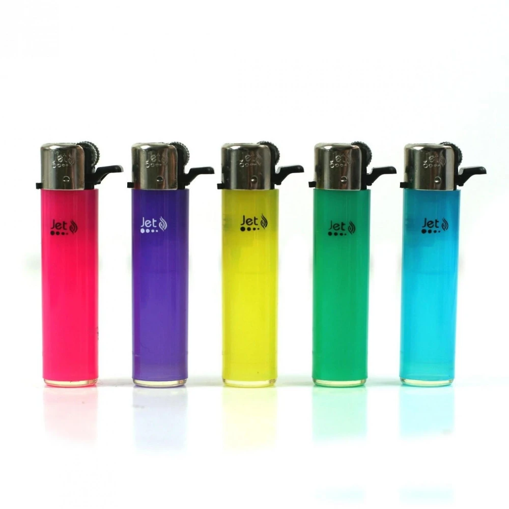 Barquette de 25 Briquets JET Round. Briquet à pierre translucide de couleur assortis.